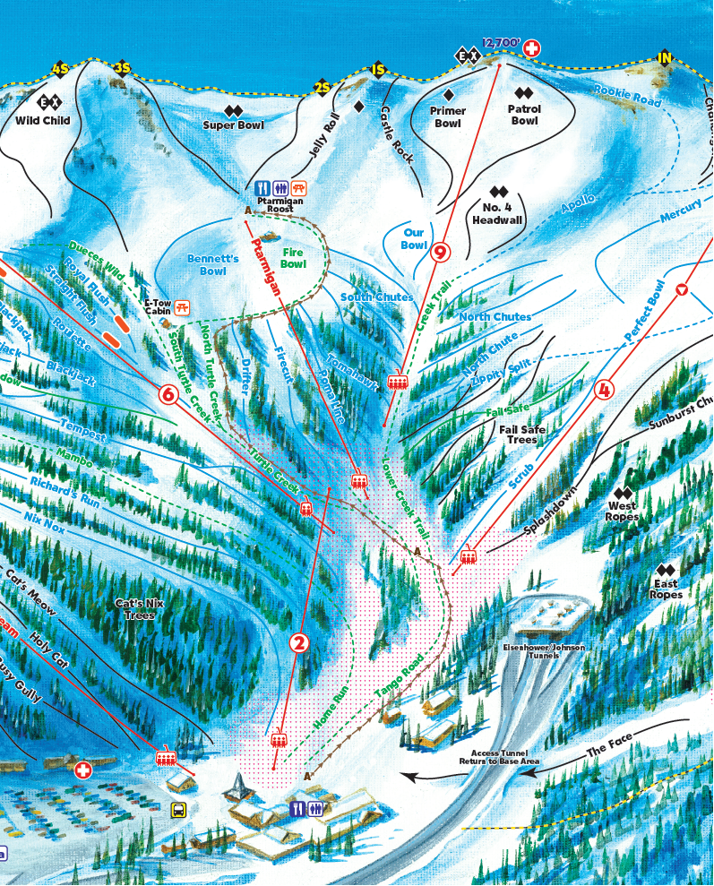 We will have an event waiver for participants to sign at check-in. Uphill Access passes to Loveland are $50 for the season if participants want to come try out the course prior to the event. On the night of the event, we will be waiving the uphill access fee and have temporary uphill access passes for the event only. Participants will pick those up at check-in, if needed. Loveland has 1 uphill access route starting from the base of Lift 2 to the top of the Ptarmigan Lift, ending at the Ptarmigan Cabin. Route A uphill access route can be seen along the brown dotted line that starts at the base along Tango Road. We will have signage and guides for those unfamiliar with Loveland.